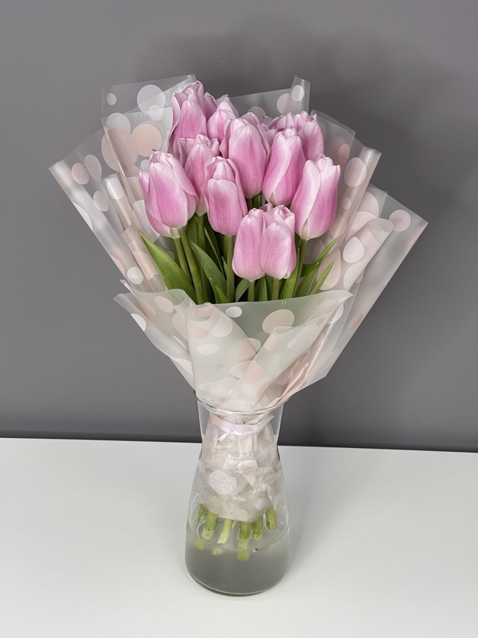 Перед отправкой мы фотографируем готовый букет и отправляем фото клиенту. Это подтверждает соответствие заказу и позволяет убедиться в качестве композиции