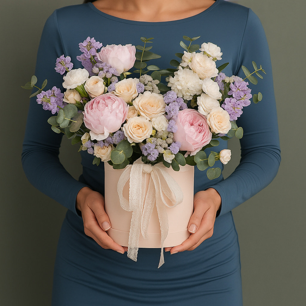 Цветы в коробке «Нежная акварель» - букет, который обретает завершенный вид благодаря стилю оформления и элегантной упаковке